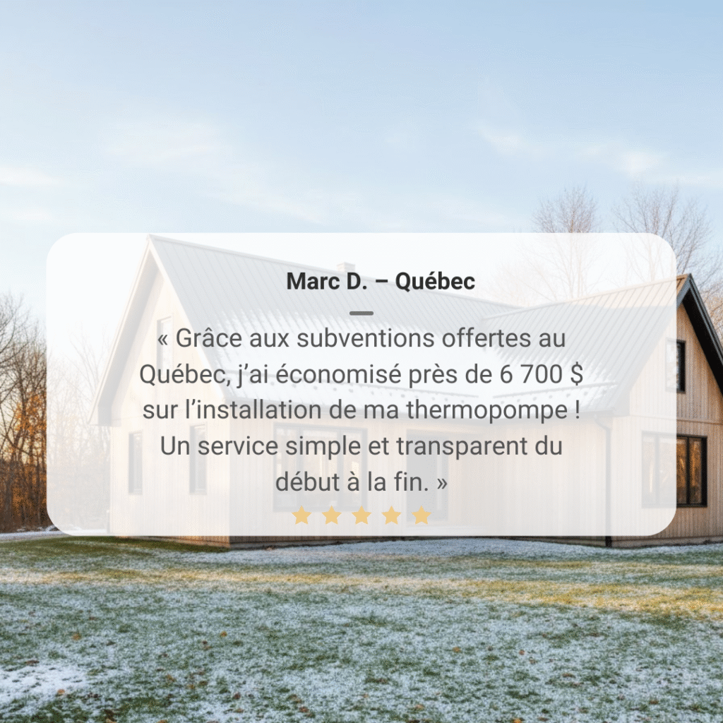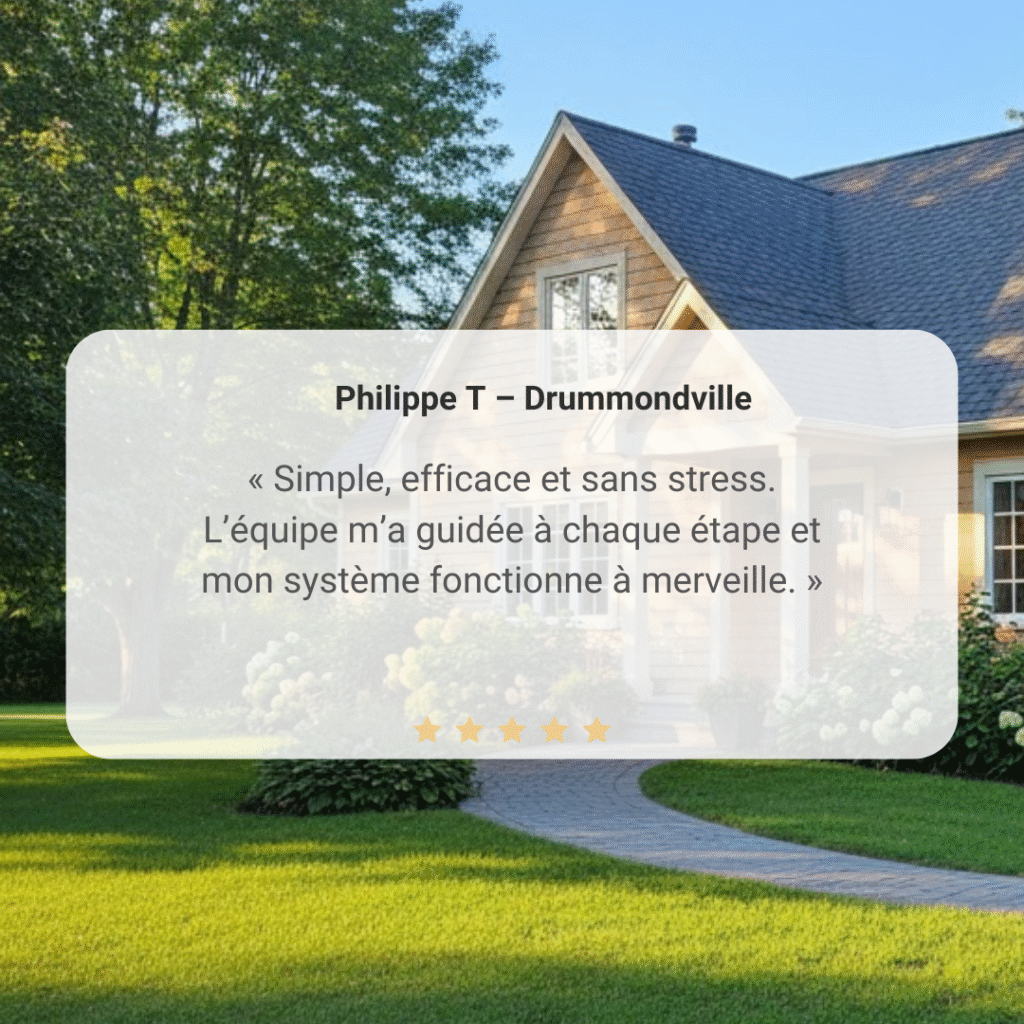Une fois la soumission acceptée, l'installation peut être planifiée en quelques jours seulement, selon la disponibilité des entrepreneurs dans votre région. Tous nos partenaires sont certifiés, fiables et assurent un service rapide et garanti.